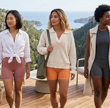 For the athleisure enthusiasts, wearing a sports bra under an open-front button-down shirt can serve as an equally stylish choice. This layering technique not only showcases the biker shorts but also provides a functional approach to summer styling. Accessories, such as statement sunglasses or caps, can further enhance these looks to reflect individual style.